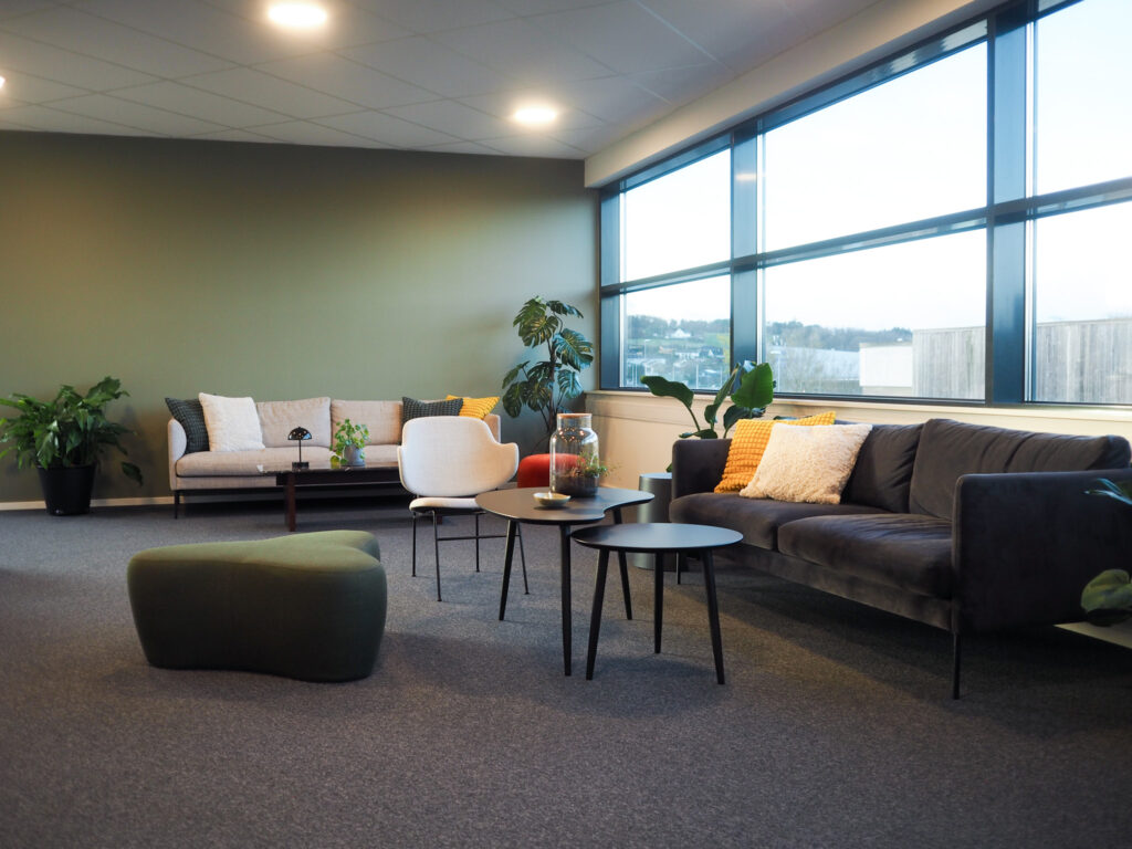 Fra kontrakt til innflytting gikk det under to uker. Likevel beskriver de prosessen som enkel og trygg. Driftsteamet i Smedvig Eiendom ved Site 4016, Kim Lammenes og Ole Bård Madsen, malte, ryddet, monterte og gjorde alt klart. Stian Selheim fra Kompaniet bidro i prosessen med gjenbrukte møbler, og Intuy leverte og installerte alt av lyd og skjermer. Hospitality Manager på Site 4016, Cecilie Desiree Røssandhaug, fulgte dem tett gjennom hele innflyttingen.